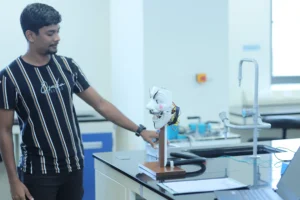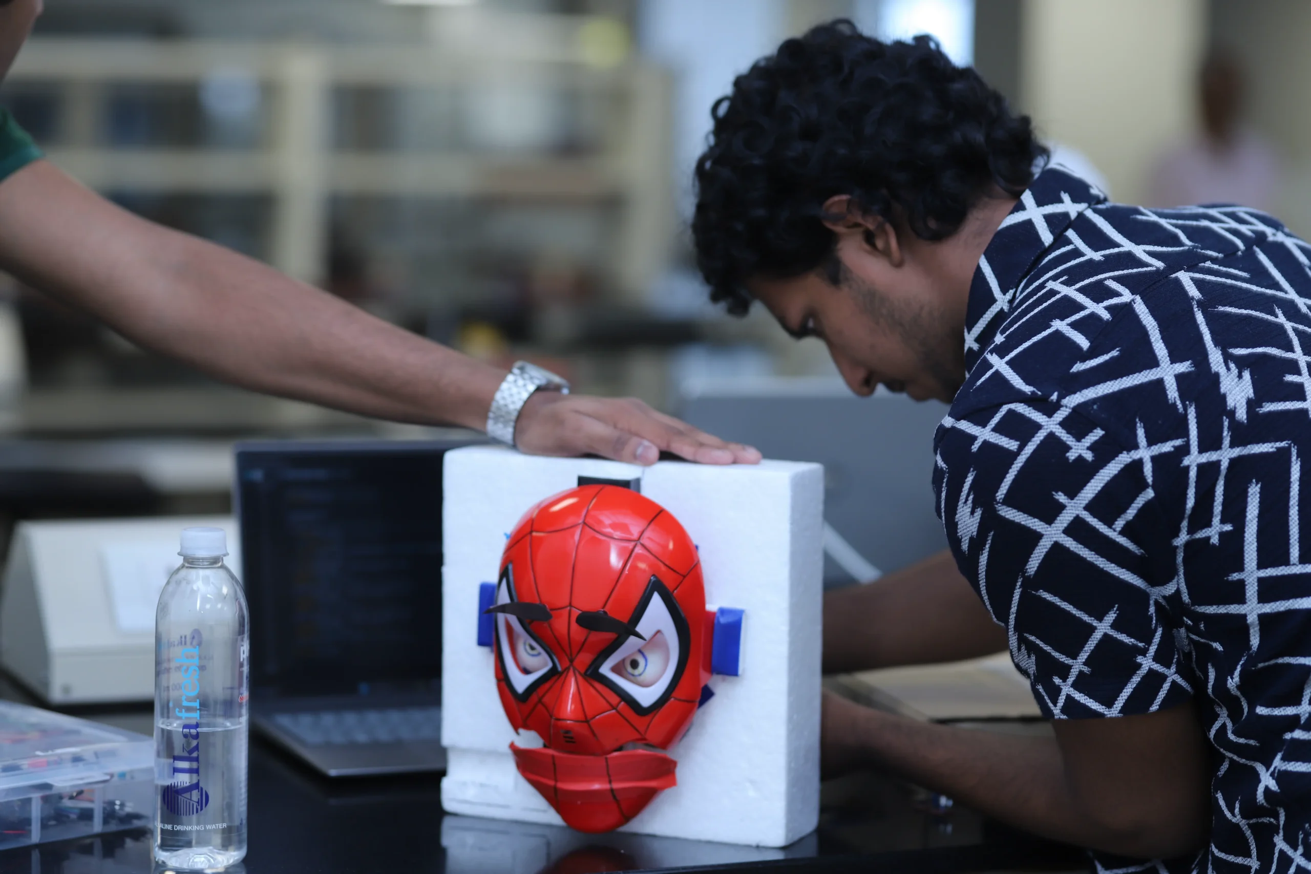This project involves the design, construction, and programming of a standalone face robot companion using an Arduino Mega 2560 microcontroller. The objective is to create a human-sized robotic face capable of displaying five distinct emotions—neutral, happy, angry, sad, and surprised—based on either keypad input or sound analysis. The robot included independently moving eyes, eyebrows, and a jaw, all with smooth, synchronized motions.
