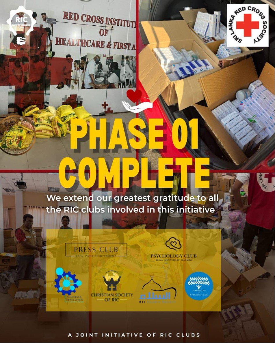 In response to the devastation caused by the Ditwah Cyclone, students of the Royal Institute Campus (RIC) came together in a powerful display of unity and compassion through Project HOPE, a joint humanitarian initiative led by RIC’s student clubs and societies.