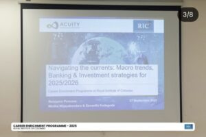 Colombo, September 27, 2025 – The Royal Institute of Colombo (RIC), in collaboration with Acuity Knowledge Partners, successfully concluded an inspiring session titled “Navigating the Currents: Macro Trends, Banking & Investment Strategies for 2025/26.” The event brought together timely perspectives on global macroeconomic developments, the evolving role of banking, and forward-looking investment approaches, providing participants with both academic insights and practical knowledge applicable to the contemporary financial landscape.